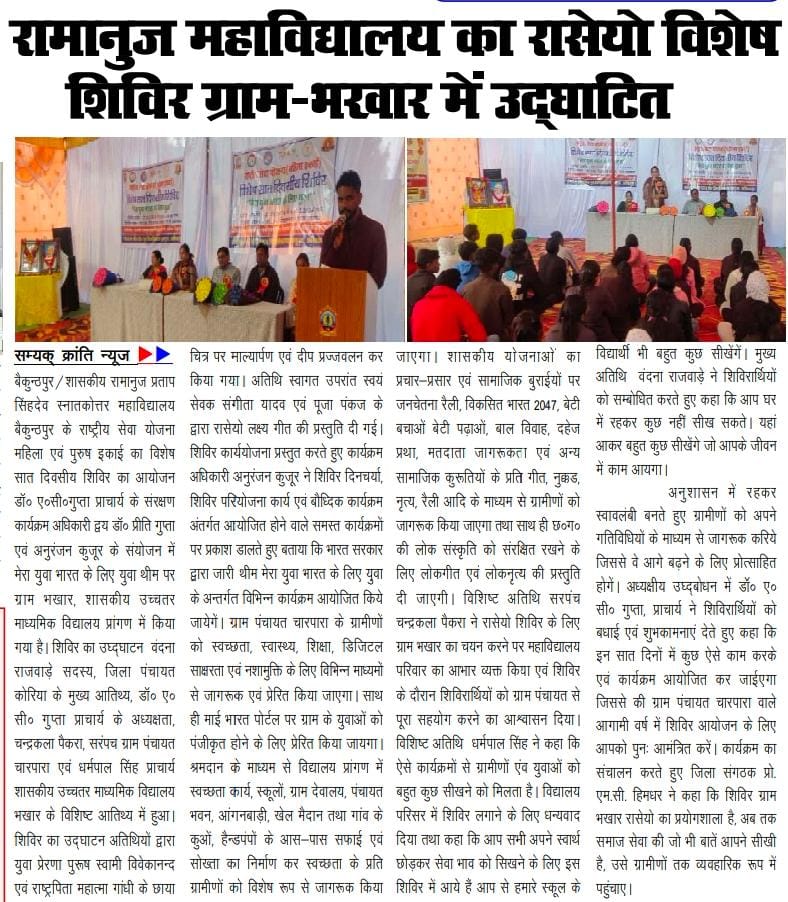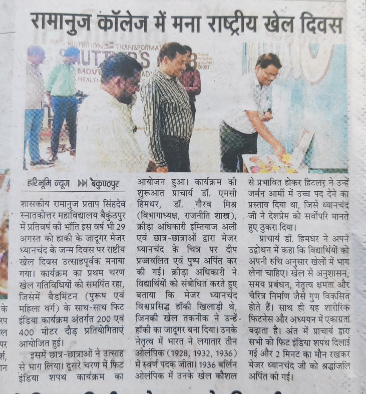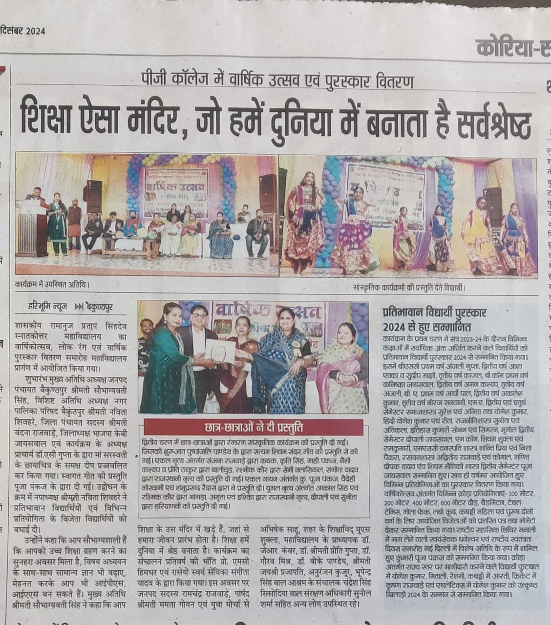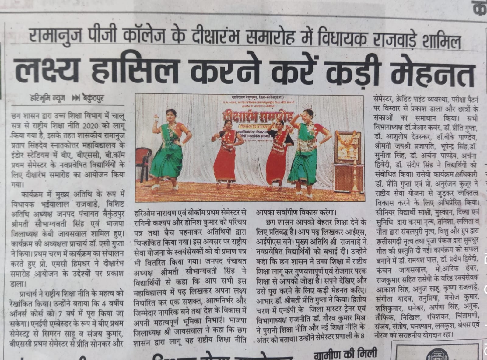 News and paper cutting -Shaskiya Ramanuj Pratap Singhdeo Snatakottar Mahavidyalaya